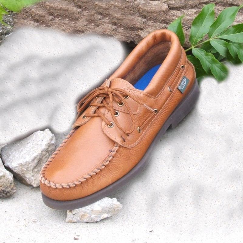 This lace-up shoe features the comfort of moccasin construction, padded collars, and a continuous lace around the heel that can be adjusted for fit. Contoured SorboAir® insoles add cushioning, arch support, and heel stability. These shoes have slip-resistant classic rubber soles with heels. As with all of our footwear, this style is resoleable.